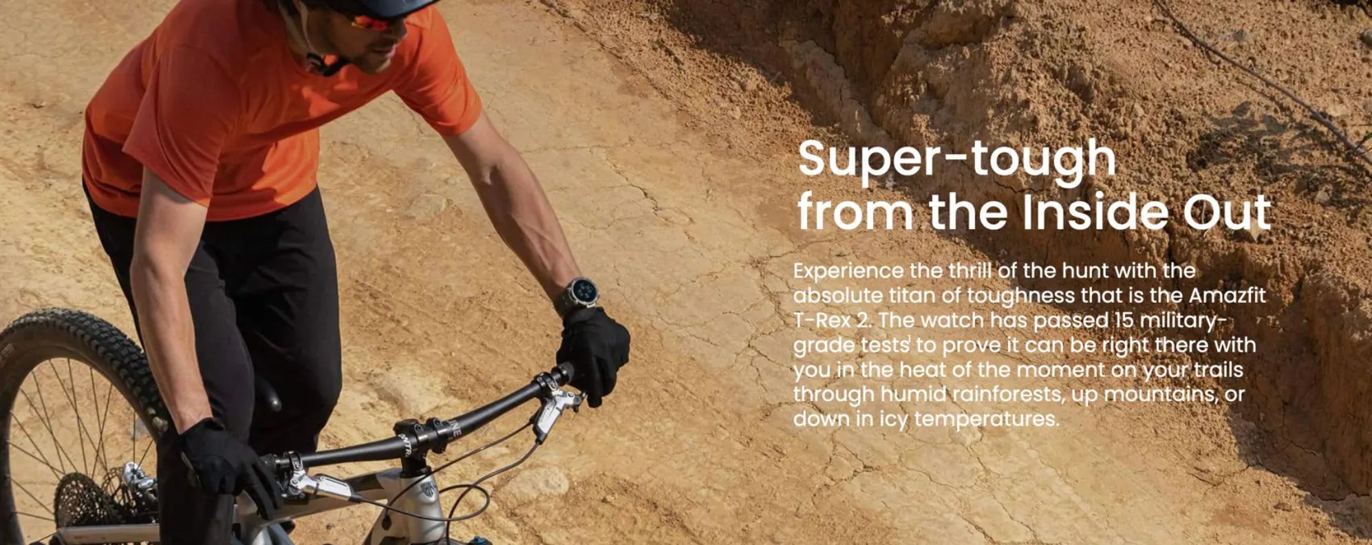 Experience the thrill of the hunt with the absolute titan of toughness that is the Amazfit T-Rex 2. The watch has passed 15 military-grade tests1 to prove it can be right there with you in the heat of the moment on your trails through humid rainforests, up mountains, or down in icy temperatures. - Rugged in Style