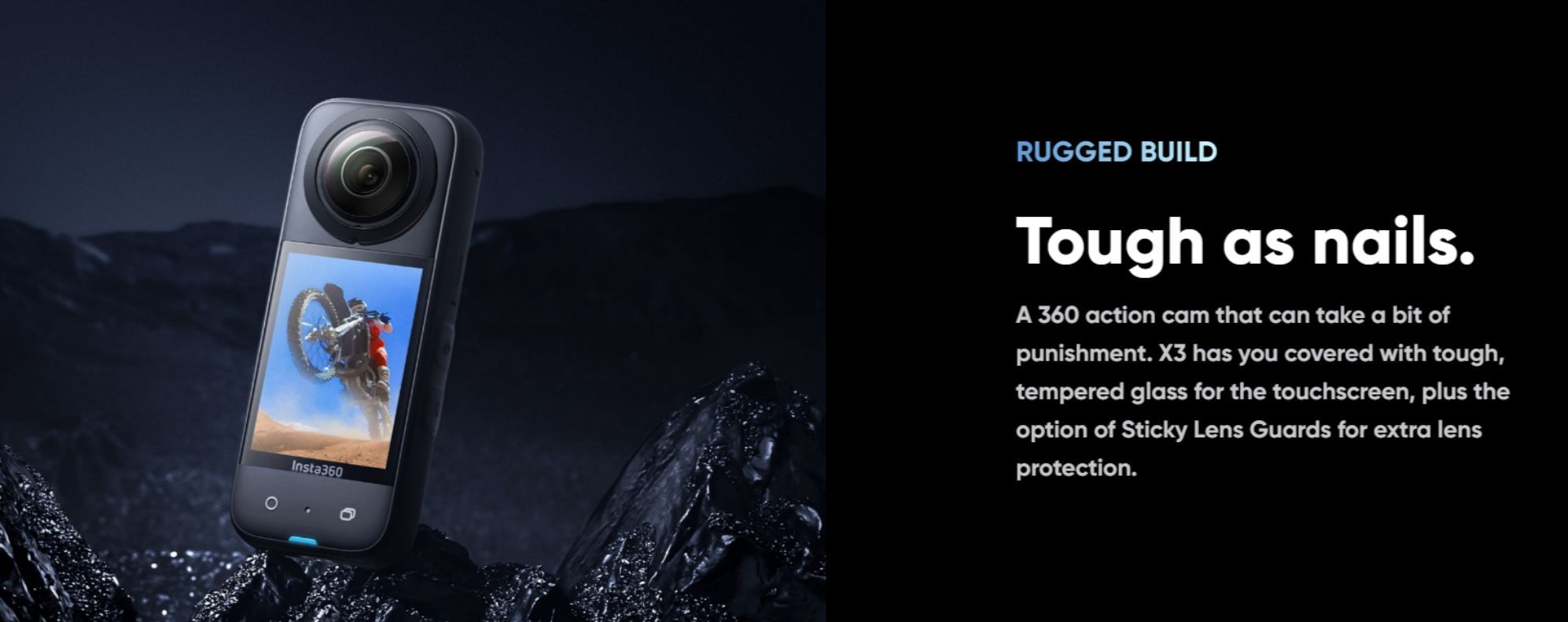 nlock an entirely new level of action cam image stabilization. Rotate X3 in any direction and watch the horizon stay level. - Rugged + Waterproof
